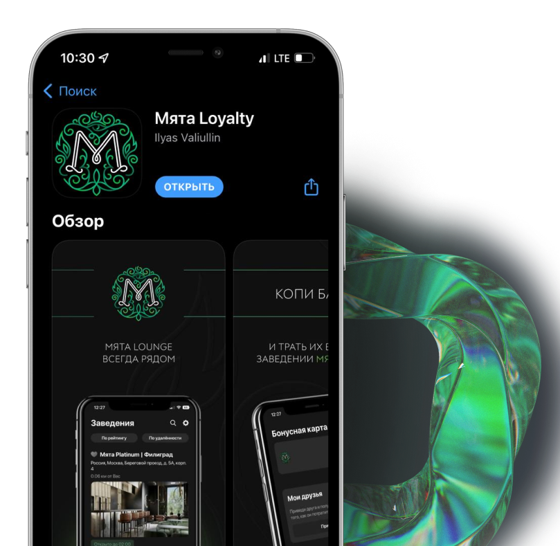 Скачайте приложение Мята Loyalty и пользуйтесь программой лояльности. Копите баллы и оплачивайте ими до 25% от суммы чека. Получайте привилегии
